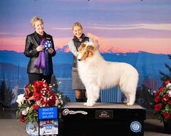 Chandler was our first pick in his litter sired by GCHS Aurealis Coldplay, ROM, he is now his top winning and top producing son. Chandler acquired qualities rare in combination- an exquisite headpiece with a detailed finish, a precise and slightly perceptible stop with a beautifully filled skull all in harmony. He has a soft expression to compliment his rare qualities and a magnificent neck to complete his picture. Chandler is a Best In Show Winner, Multiple Specialty Winner, Multiple Herding Group Winner and has accumulated these exhilarating wins at the National level.